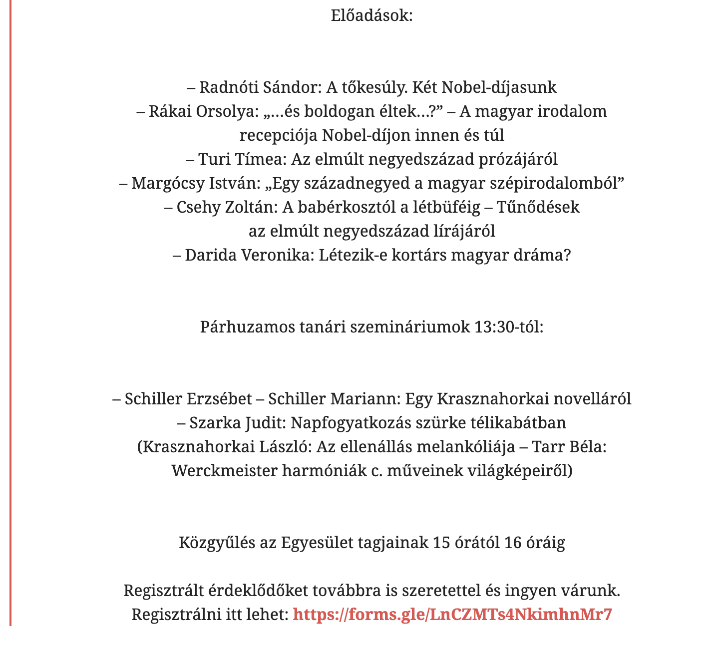Csehy Zoltán is előad a Magyartanárok Egyesülete konferenciáján 2026. április 18-án. További információk a Magyartanárok Egyesülete honlapján olvashatók: