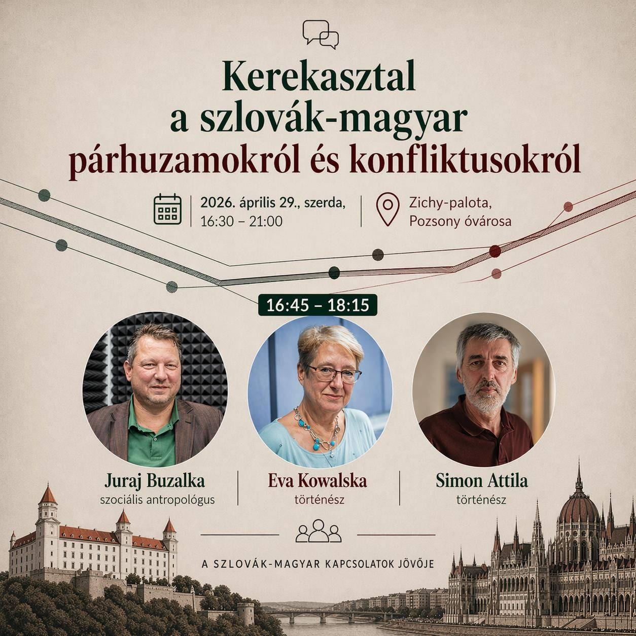 Szeretettel várunk minden érdeklődőt egy olyan estére, amely a szlovák-magyar kapcsolatok egyik fontos kérdésére keresi a választ: hogyan lehet a történelmi kérdésekről úgy beszélni, hogy azok ne egymás ellen fordítsanak bennünket, hanem segítsenek a jövő felé nyitni.