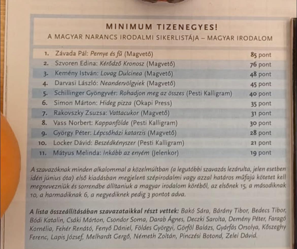 Simon Márton Hideg pizza című kötete is felkerült a Magyar Narancs Minimum tizenegyes! című irodalmi sikerlistájára!
