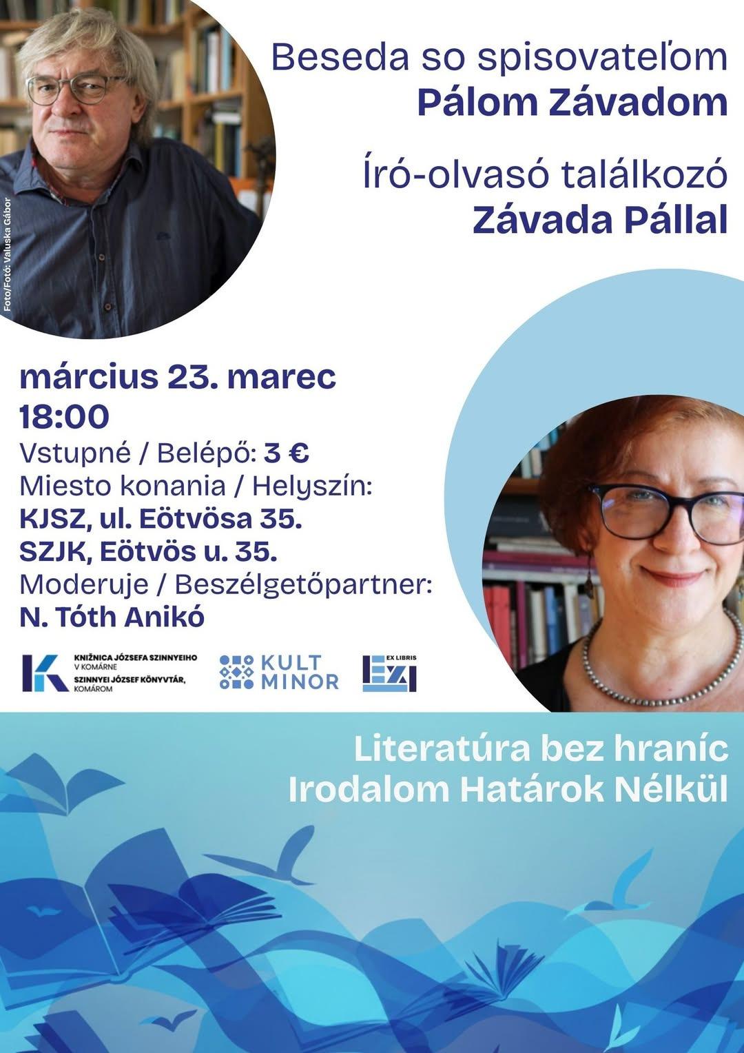 Az Irodalom Határok Nélkül c. fesztiválunk keretében 2026. március 23-án 18:00 órától a komáromi Szinnyei József Könyvtárban egy igazi irodalmi nagyágyút köszönthetünk: vendégünk a Kossuth- és József Attila-díjas Závada Pál.